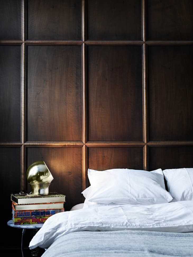 Bedroom Paneling - Minimalist Bedroom with Wood Paneling - Interior Idea / Tongue and groove panelling for bedroom wall panelling at the back of the bed and along the wall.